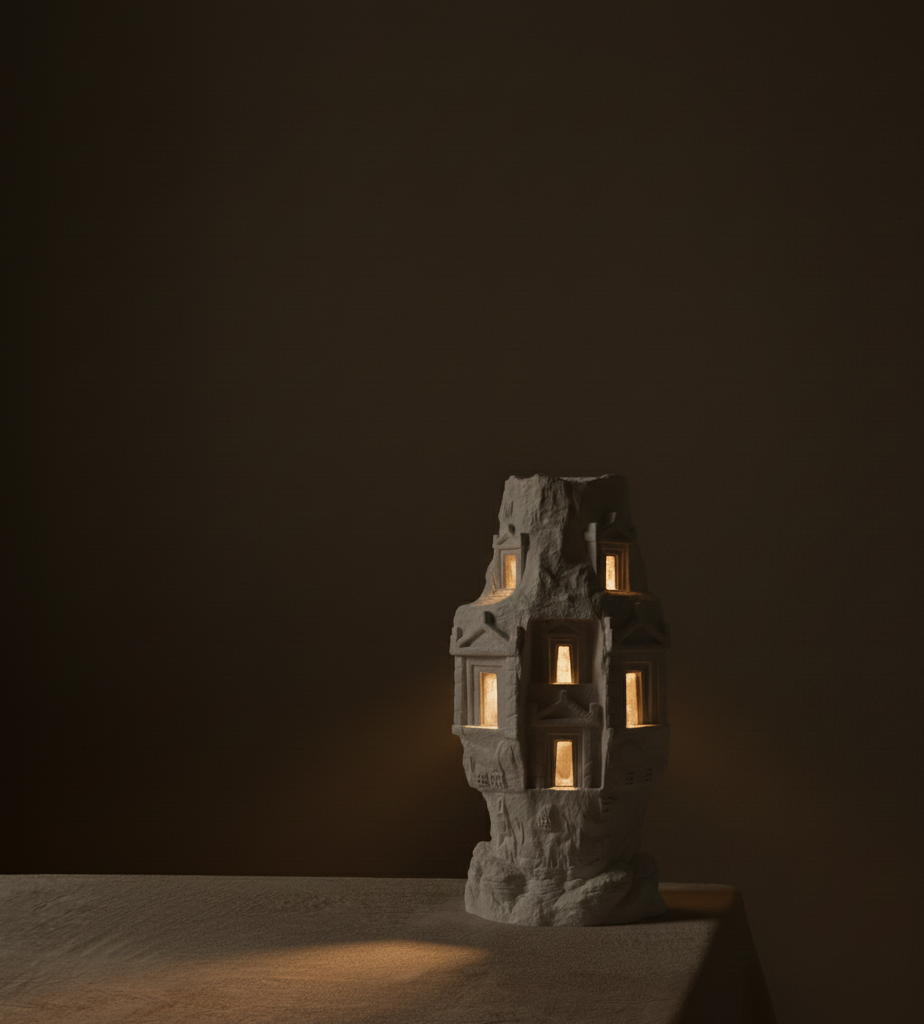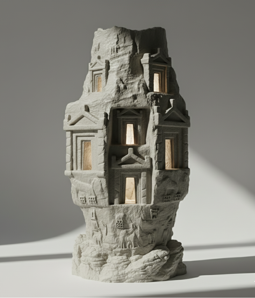 Ruhani sükûnet ile maddi dayanıklılık arasındaki denge, Likya’nın zamana direnen mirasını heykelsi bir sadelikle yeniden yorumlar. Bu eser, sessiz ama derin bir varlık hissiyle mekâna zamansız bir karakter kazandırır.