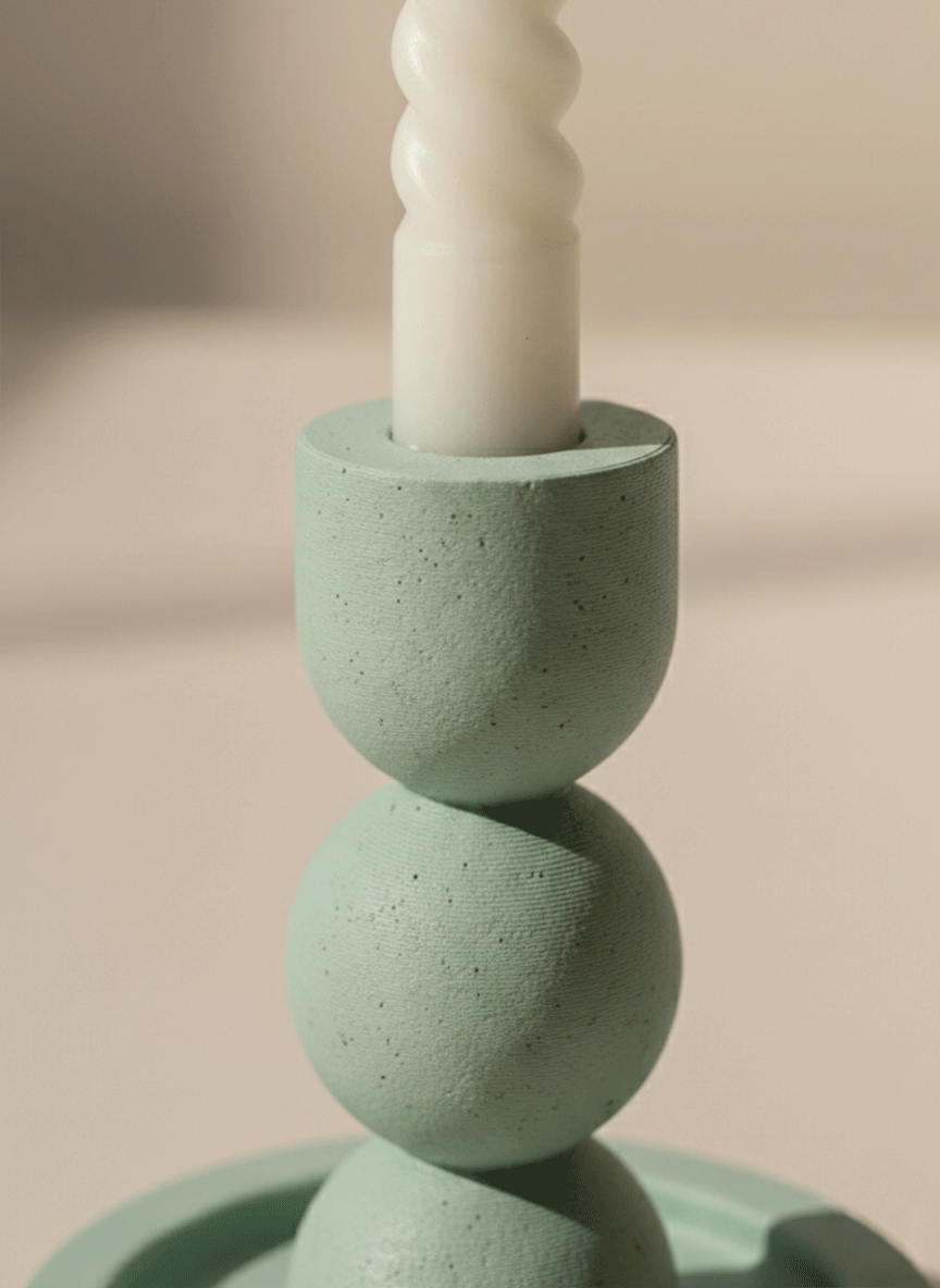 Mat ve homojen yüzey yapısı, ışığın form üzerinde eşit dağılmasını sağlar. Gölge sakin bir dengede yerleşir; obje mekânla çatışmaz, onun ritmine uyum sağlar. Plena, döngünün doruk noktasıdır; fakat bir son değildir.